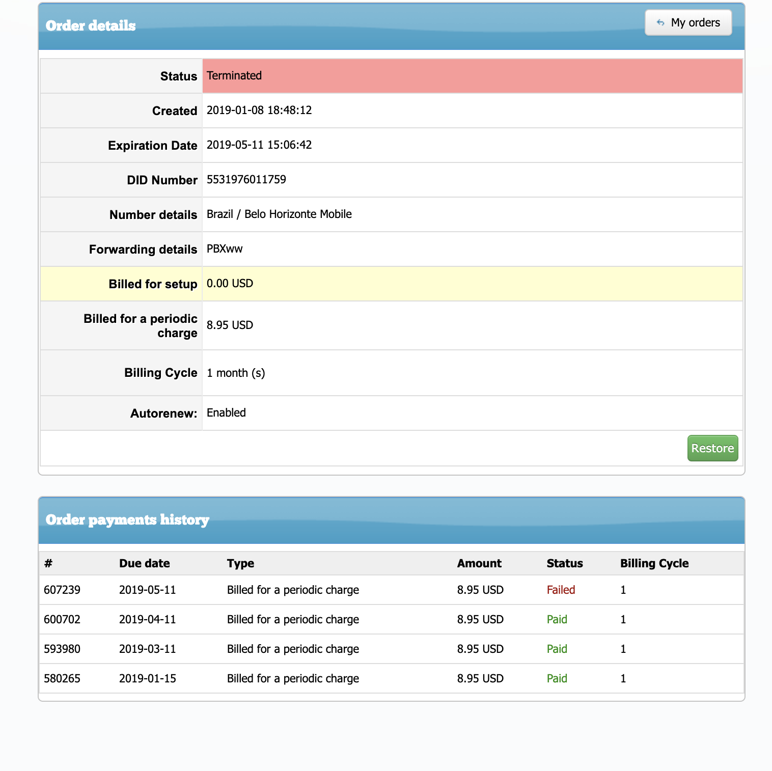 I need the number to be reactivated but when I click restore, it says restore failed.