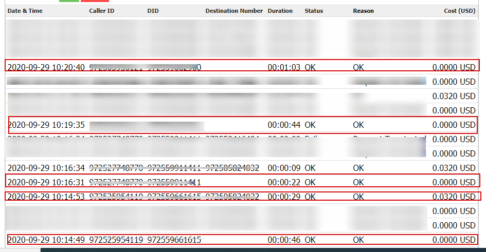 If the call goes to a menu or internal flynumber voicemail before reaching a regular phone number, there is no charge. Which seems to be the case with some of the calls you posted…