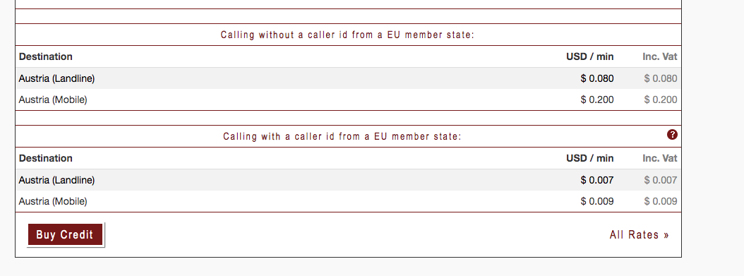 The reason I ask is because Betamax as 2 rates and for some EU countries the difference is significant!! It’s either a 10 cents per call or almost a free call, like in this case: